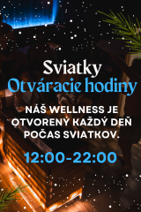 Vstúpte do zóny oddychu a hrejivej regenerácie svojho tela a duše. Uvoľnite sa a doprajte si blahodárne účinky BIO sauny, absolvujte saunovanie v tradičnej fínskej saune alebo vyskúšajte kľudnejší oddych v infrasaune. Tešiť sa môžete aj na pravidelné saunové rituály. Osviežiť sa môžete v ochladzovacom bazéne s teplotou 10 – 16 °C. Relaxačné priestory s polohovateľnými kreslami a občerstvením sľubujú návštevníkom ničím nerušený odpočinok. Vstup do wellness zóny nie je potrebné rezervovať.